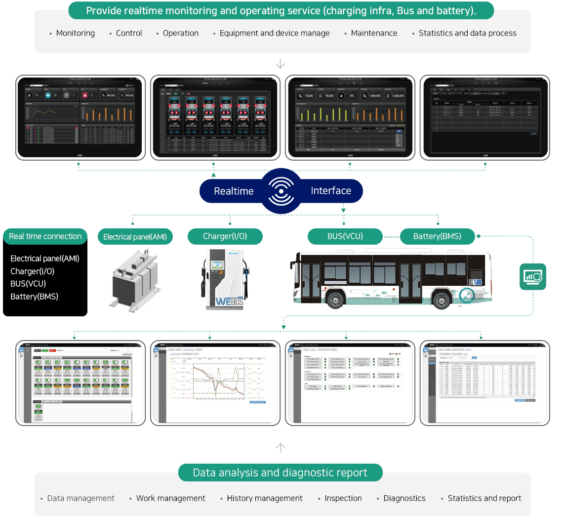 Battery status is monitored through ALL CAN system which integrates informations from VCU, BMS, instrument and other component and ALL CAN system connected to total operation center (TOC) via mobile communication device.